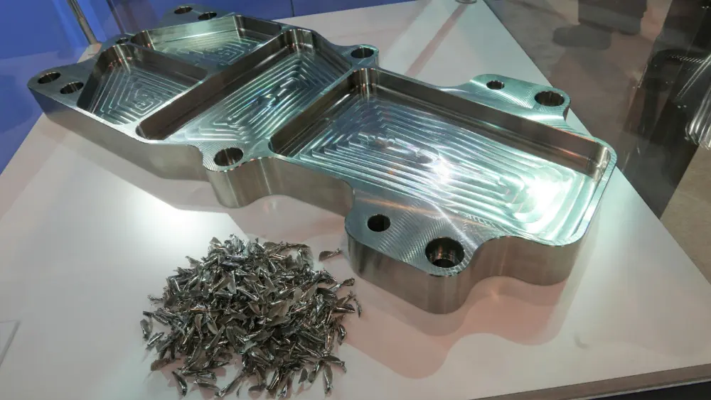 Le grand bénéfice couvre deux aspects. Comme l’axe B se situe dans la pièce, on peut, en combinaison avec par exemple une tour de serrage, serrer plusieurs pièces, de sorte que la machine peut tourner plus longtemps sans intervention, même sans automatisation. Le second aspect est l’évacuation des copeaux, idéale avec une machine horizontale. En combinaison avec la construction stable du concept, la machine CNC horizontale se prête bien au fraisage sans intervention, sans créer de problèmes découlant du fait que les copeaux introduisent trop de chaleur dans la machine et influencent négativement la précision. C’est un atout important des centres d’usinage horizontaux, notamment si l’on doit fraiser de nombreuses chambres profondes.
