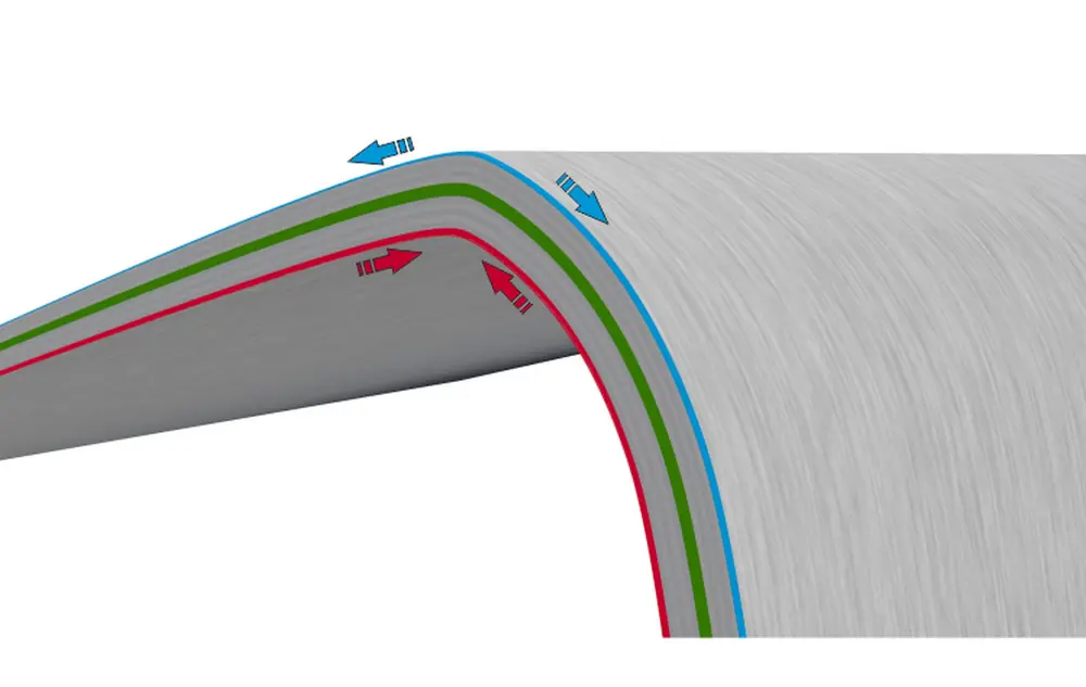 Le pliage consiste à comprimer le matériau à l'intérieur du pli et à l'étirer à l'extérieur du pli (photo: Tosec)