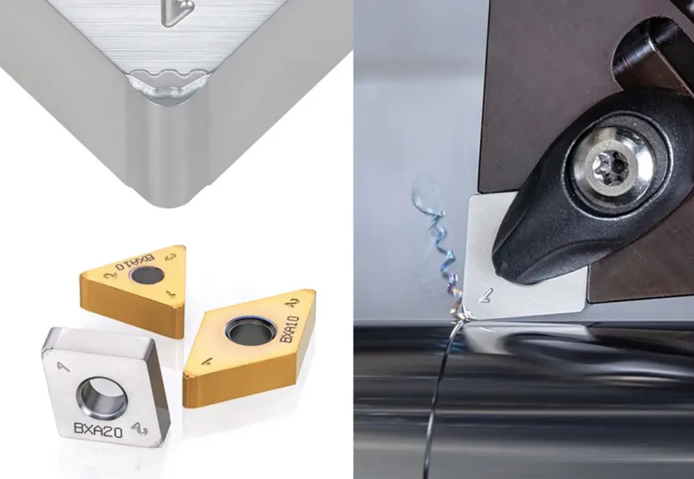 Les revêtements améliorent encore les propriétés des matériaux de coupe, ce qui a une incidence particulière sur la durée de vie des outils. Le CBN, le matériau le plus dur après le diamant, se prête très bien au tournage de matériaux tels que l'Inconel 718. Par rapport à une plaquette en carbure avec un revêtement TiAlN, la durée de vie de l'outil double à une vitesse de coupe de 50 m/min. Les plaquettes CBN sont particulièrement adaptées au tournage de l'acier trempé (55 HRC et plus). La meilleure résistance à la température du CBN assure une plus longue conservation des arêtes de coupe sans rupture ni déformation. Les plaquettes CBN à géométrie Wiper peuvent être utilisées pour améliorer la qualité de surface (tout en maintenant la productivité) ou pour tourner avec la même qualité de surface que les plaquettes conventionnelles, mais avec une vitesse d'avance plus élevée et donc un plus grand volume de copeaux. Le temps de cycle peut être réduit de moitié avec cette géométrie, et pas seulement lors du tournage de matériaux trempés à la CNC.