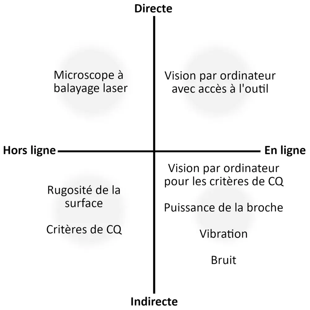 La recherche a montré que même de simples algorithmes d'apprentissage automatique peuvent prédire de manière fiable l'état d'usure des outils, mais uniquement dans des conditions optimales. Les flux de données mesurées doivent contenir des caractéristiques d'usure des outils fortement corrélées, qui servent d'input pour le ML. Les indicateurs directs, comme l'usure des flancs, sont difficiles (voire impossibles) à mesurer en dehors des conditions de laboratoire. Pourtant, il y a de grands avantages à le faire.