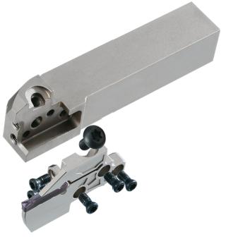 Suite à l'afflux constant de copeaux dans l'espace contigu de la zone de coupe étroite (pour limiter la perte de matériau), prévoir l'arrosage à cet endroit précis pour en tirer le meilleur avantage n'est pas une sinécure lors du tronçonnage (et par extension le rainurage). Pour cette raison, les fabricants d'outils, après l'introduction d'inducteurs ou veines dans les outils proprement dits, ont lancé dernièrement pas mal d'innovations qui concernent principalement l'approche la plus idéale de l'arrosage, en tant qu'alternative au montage de canaux de refroidissement. Une buse d'arrosage placée du côté supérieur et dirigée vers la zone de coupe, serait avantageuse pour le contrôle des copeaux et leur fractionnement (même à une pression de 10 à 20 bars), tandis que la tête de pulvérisation le long du côté inférieur de la plaquette et focalisée sur la dépouille de l'arête aurait un effet positif sur la durée de l'outil par l'abaissement de la température dans la zone de coupe étroite. Cette approche serait surtout payante dans le cas du tournage de matériaux à surface durcissante (comme le titane, les superalliages et les types d'acier inoxydable qui durcissent immédiatement en surface lorsque la température augmente).